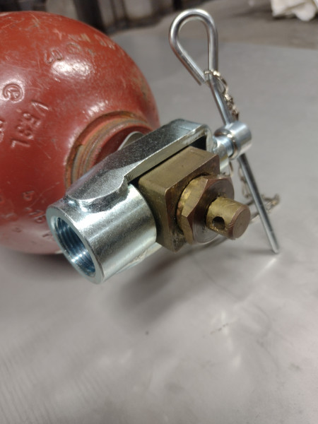 Behållarkoppling för anslutning av reduceringsventiler t.ex. R!MAC 2141 till äldre acetylenflaskor(5-liters) typ A-5.